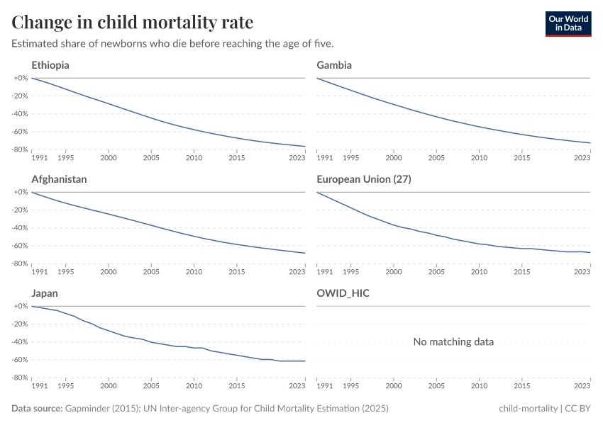 Hannah Ritchie (2025) - “Children in rich countries are much less likely to die than a few decades ago, but we rarely hear about this progress” Published online at OurWorldinData.org. Retrieved from: 'https://wdi-citations.owid.pages.dev/child-mortality-rich-countries-decline' [Online Resource]BibTeX citation