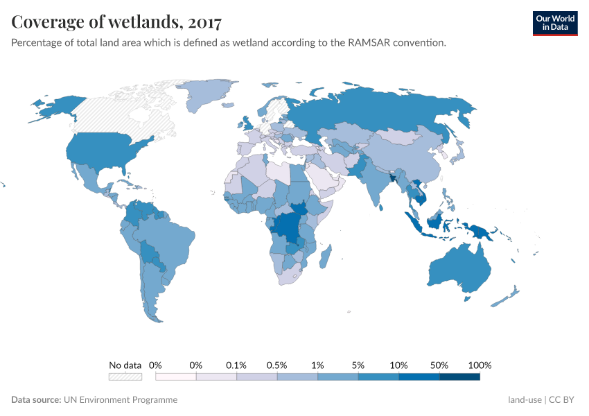 “Data Page: Coverage of wetlands”. Our World in Data (2025). Data adapted from UN Environment Programme. Retrieved from https://wdi-citations.owid.pages.dev/grapher/coverage-of-wetlands [online resource]How to cite this data