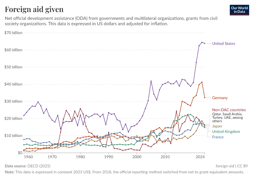 Simon van Teutem and Pablo Arriagada (2025) - “What is foreign aid? How “Official Development Assistance” is measured” Published online at OurWorldinData.org. Retrieved from: 'https://wdi-citations.owid.pages.dev/what-is-foreign-aid' [Online Resource]BibTeX citation